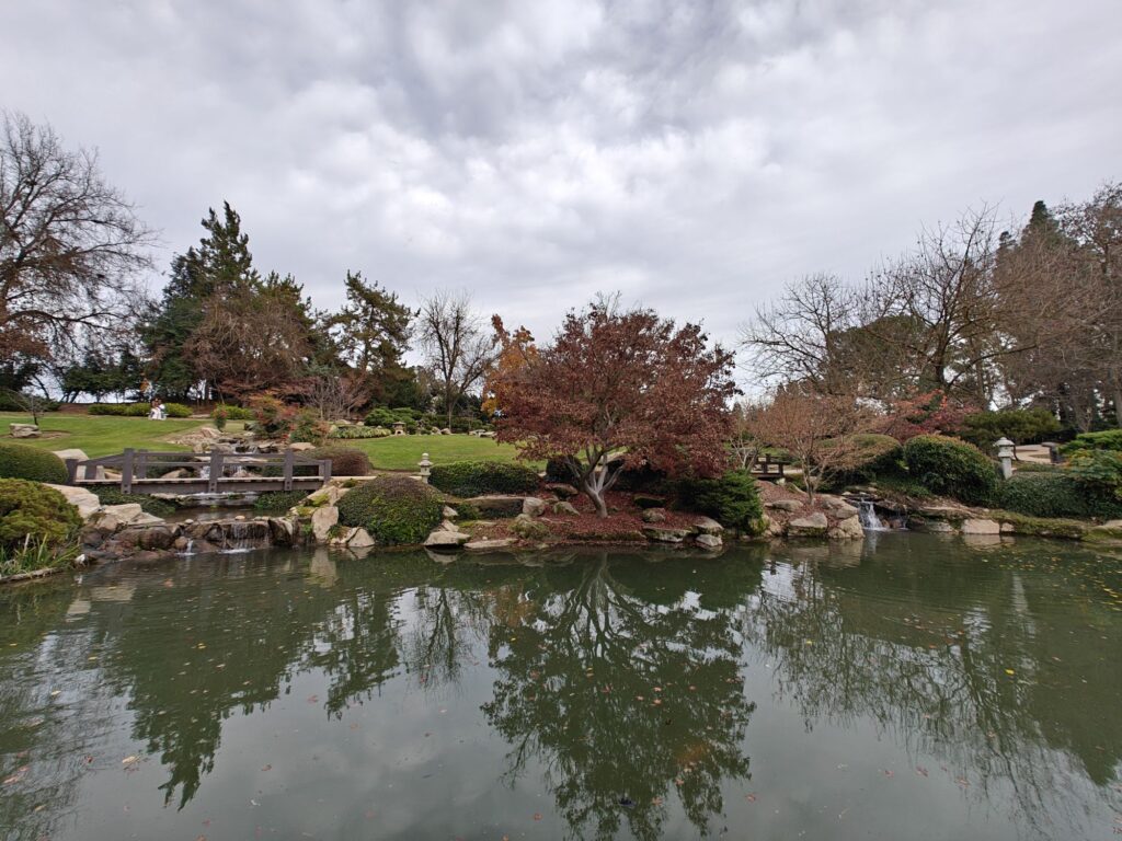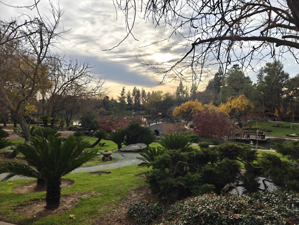 I visited the Friendship garden for the first and only time with Mike in 2018. My visit there was memorable, with plenty of beautiful scenery, a Bonsai tree section, koi fish, a lake and small waterfalls/streams, with serenity. I revisited the garden again with Mike and some friends in December 2025, a little over 7 years since my last visit. Much of the garden looked familiar to me—except for 2 details I didn’t quite remember. There’s a Sego Palm Tree path, but more interestingly, there’s Peacocks! Peacocks in Fresno are definitely an uncommon site, unlike the Peacock rich area that is Southern California. The history of Peacocks in California and the Central Valley is so intriguing that I’ll have to save that for another post. For now, enjoy some pictures.
